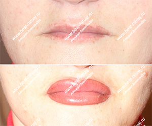 Эффект 3D достигается, как правило, за 3 сеанса, при этом мастер использует исключительно натуральные минеральные красители, что сводит к минимуму риск возможной аллергии. Поскольку для достижения желаемого эффекта необходимо нанести на губы 3-5 оттенков красителя, важно чтобы специалист не только отлично владел техникой татуажа, но и был опытным визажистом.