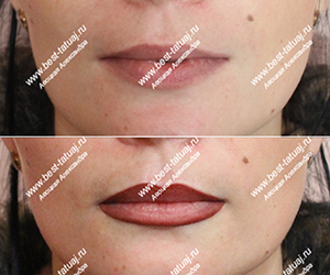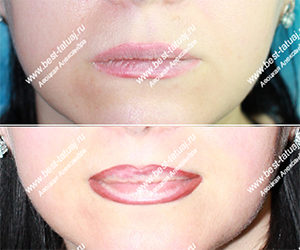 Полное заполнение или перманентная помада – эта техника татуажей губ предпочтительна для тех, кто хочет полностью изменить собственный цвет губ. Таким способом достигается увеличение объема губ и придание им сексуальности. Владение определенными методиками помогает получить интересный эффект нежного блеска на губах.
